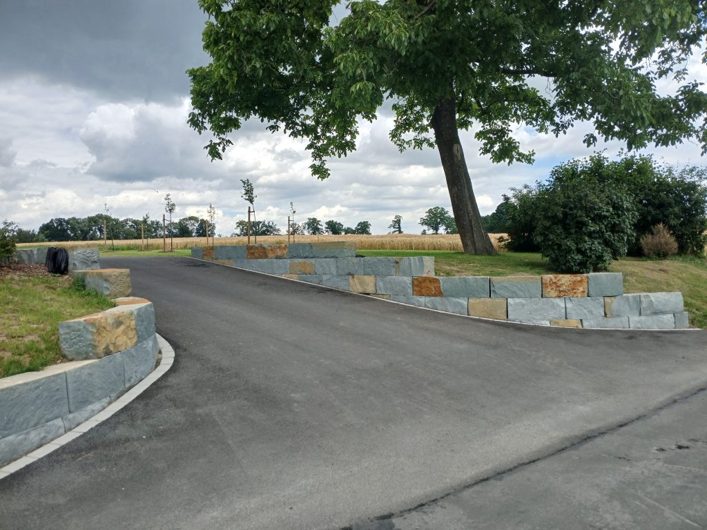 Wir setzen stabile Randsteine und errichten Abfangungen für sicheren Halt und Ästhetik.
